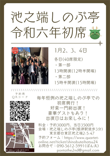 これがもっと練られた、ある程度どこに出しても間違いが無いというネタを揃えた会が独演会になります。