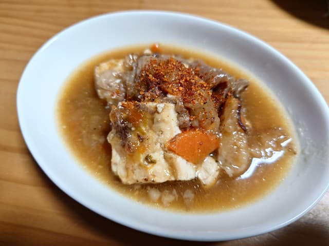 師匠好楽の最初の師匠八代目林家正蔵師匠が得意にしていた牛すじ煮込みを再現したもの。本当は牛すじとネギと焼き豆腐だけですが、痛みかけてた人参と大根があったので一緒に煮ちゃいました。すみません…