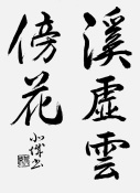 もう一点の作は、「渓」字の書き出しの点が太すぎたように感じますが、全体に筆力が有り抑揚のある送筆で生気溢れる線条にて五文字を纏められ、力量を感じさせる作です。